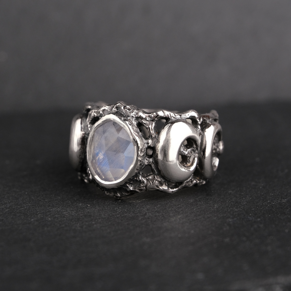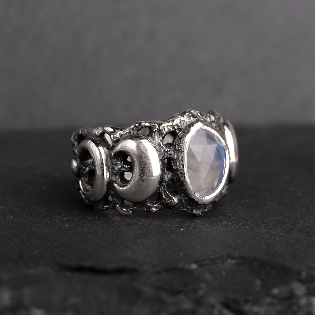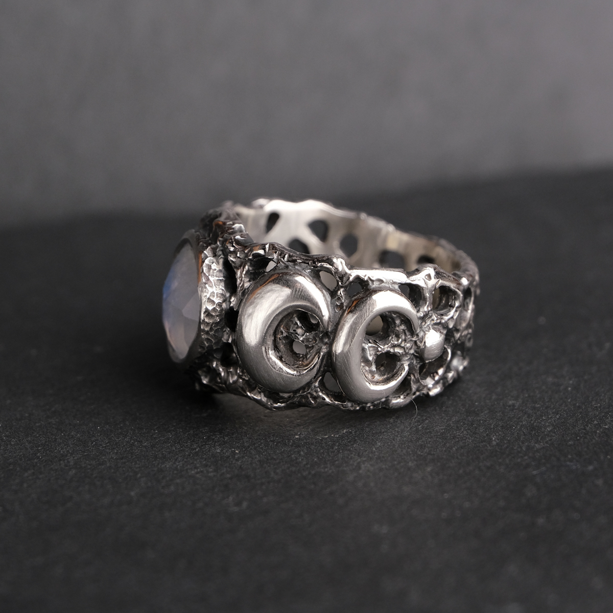 Moon phase ring with moonstone – US 7 1/4 (17.5)