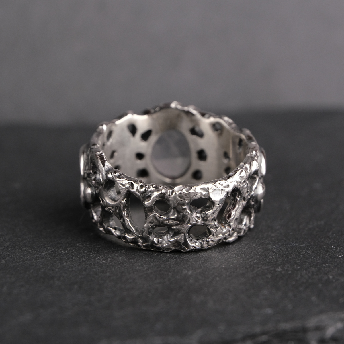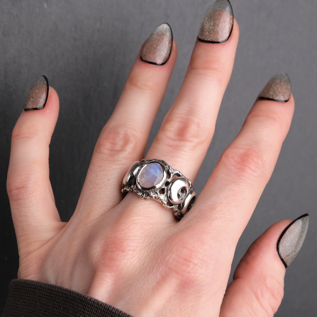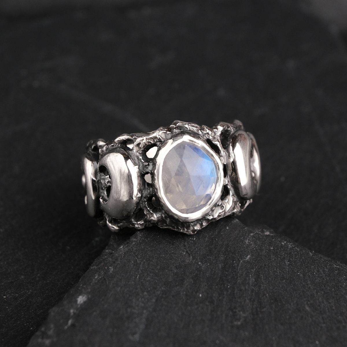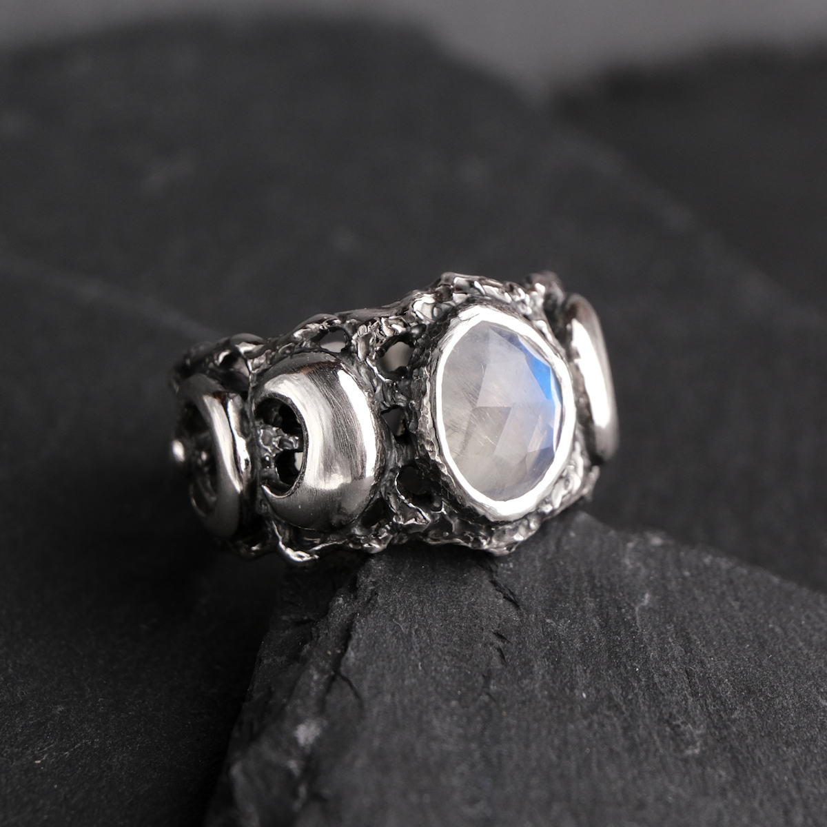 Moon phase ring with moonstone – US 7 1/4 (17.5)