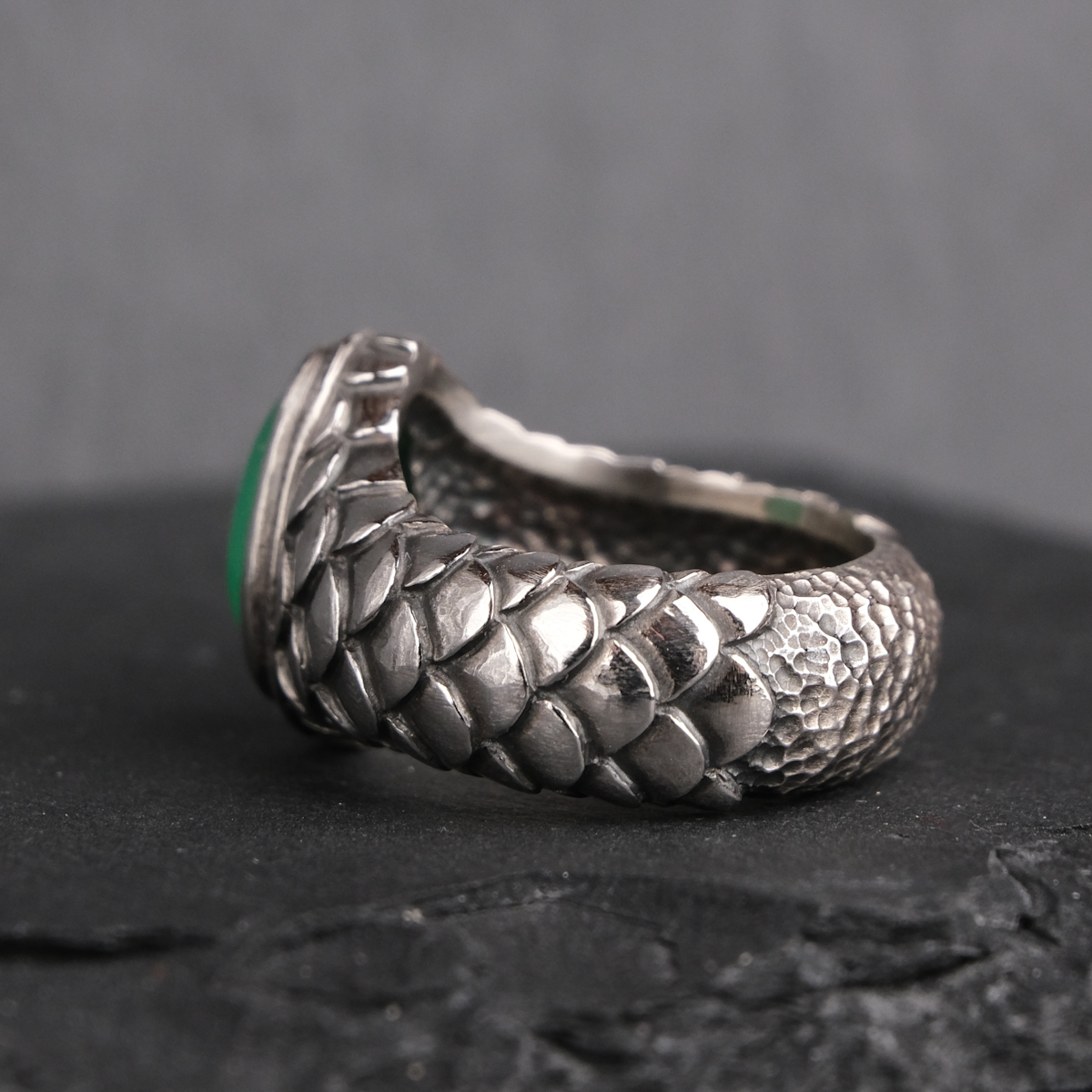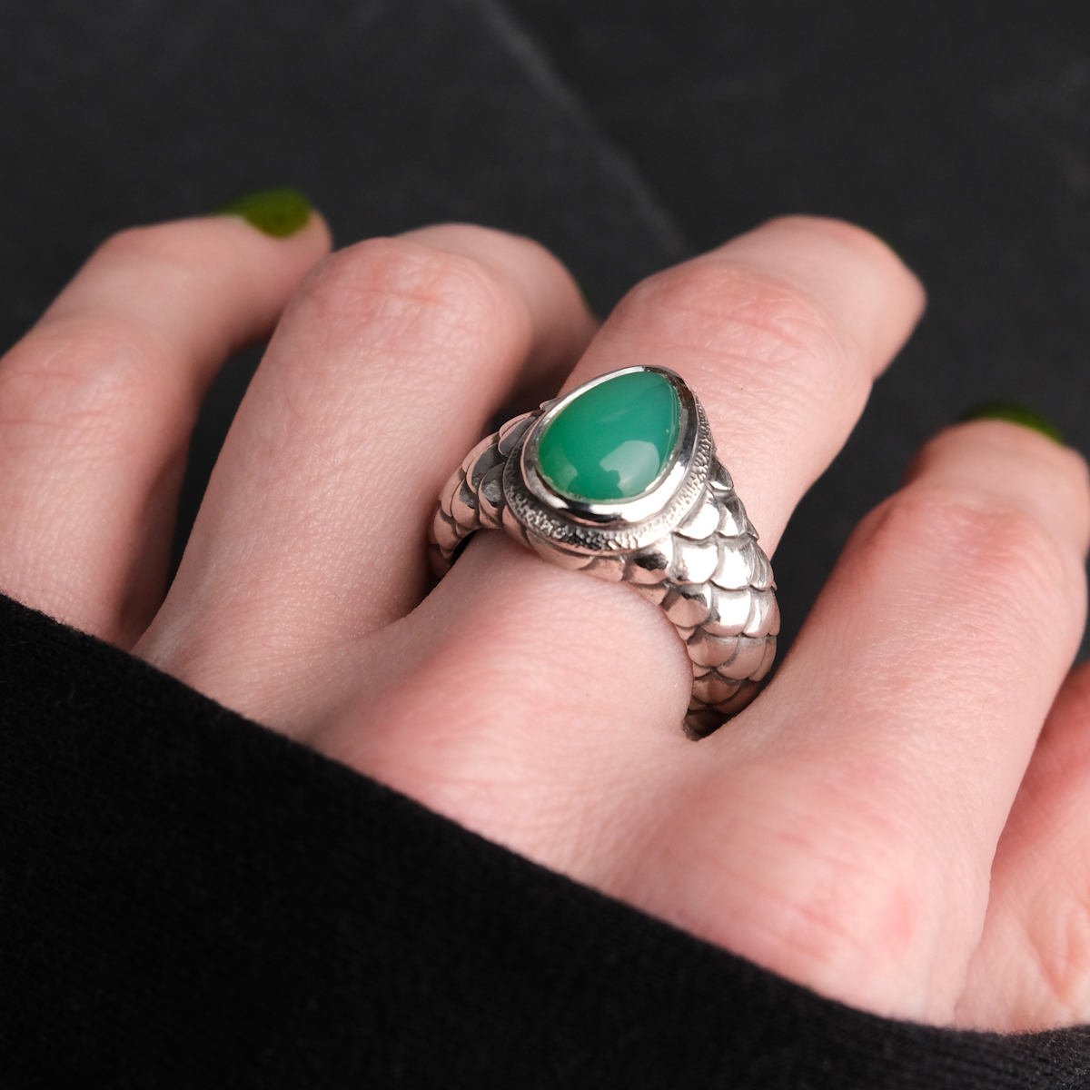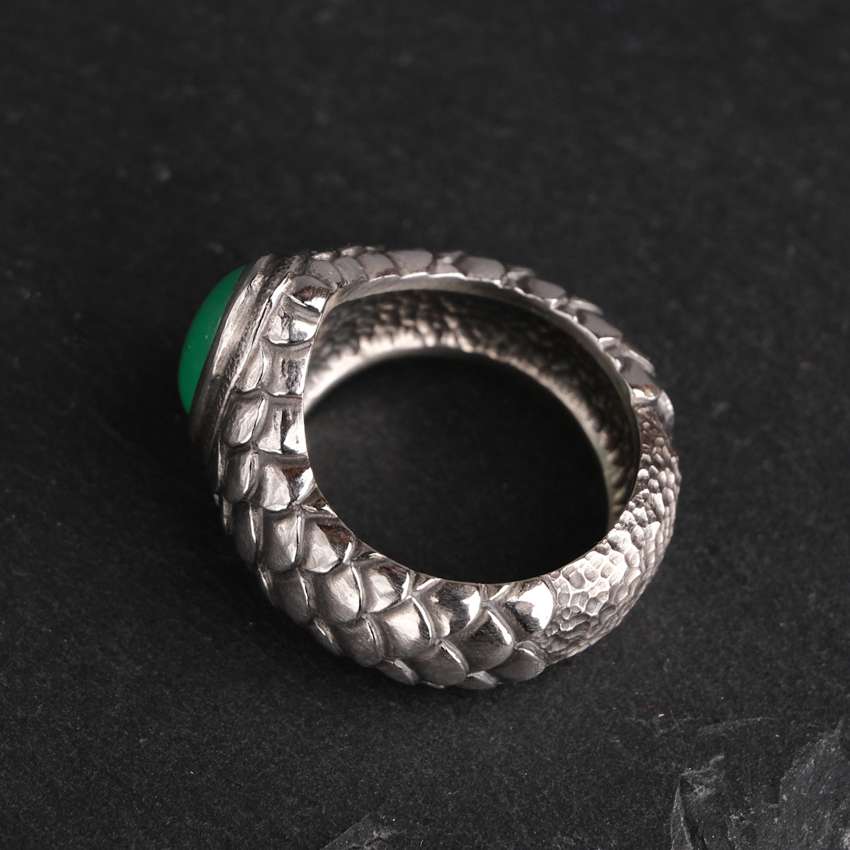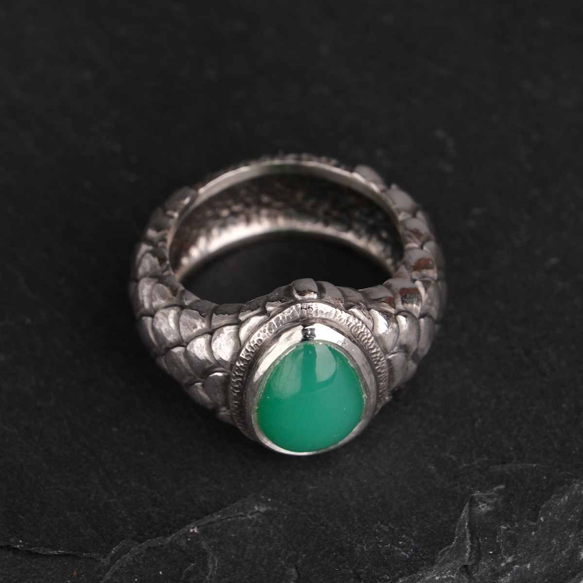 Ring with chrysoprase and scales – US 6 3/4 (17.1)