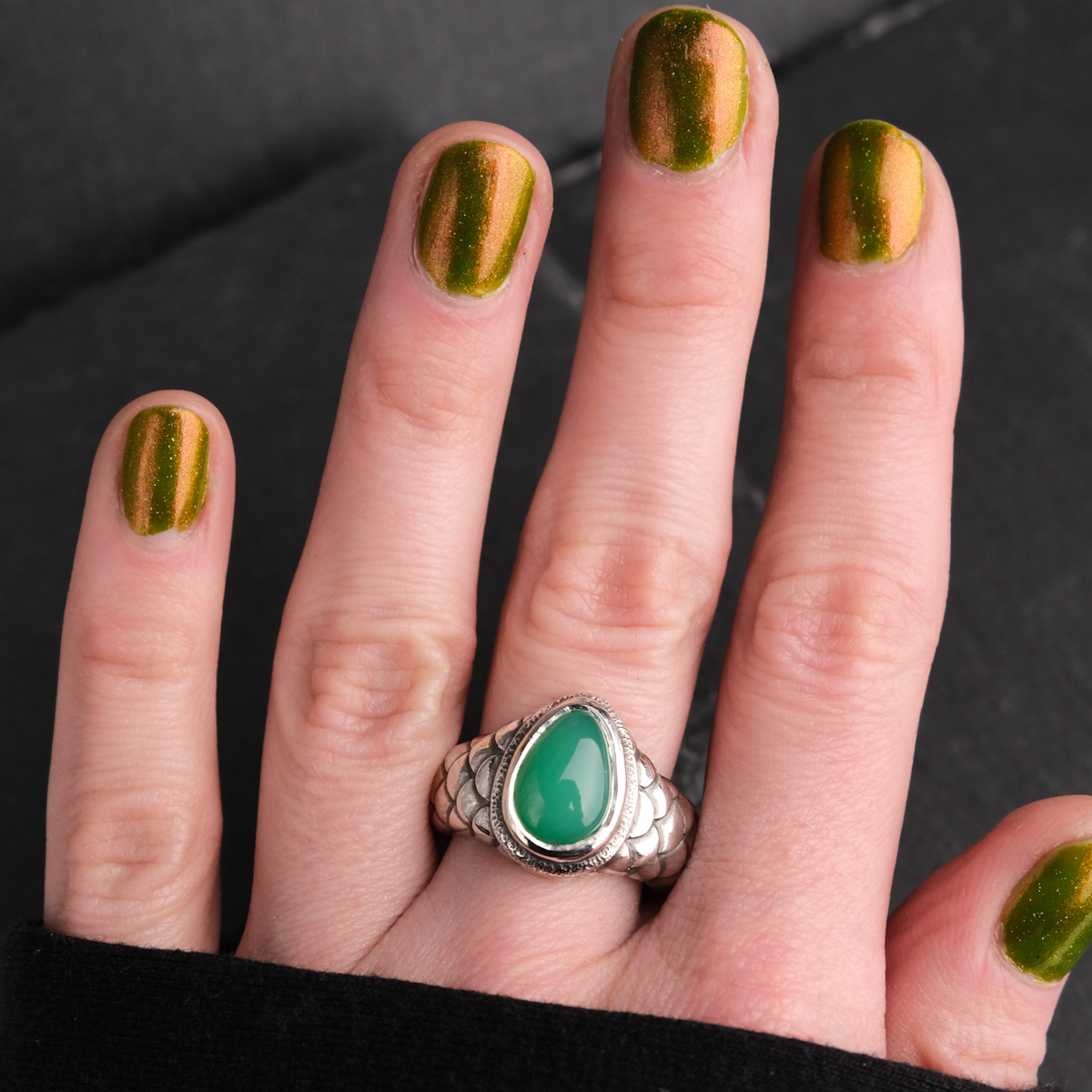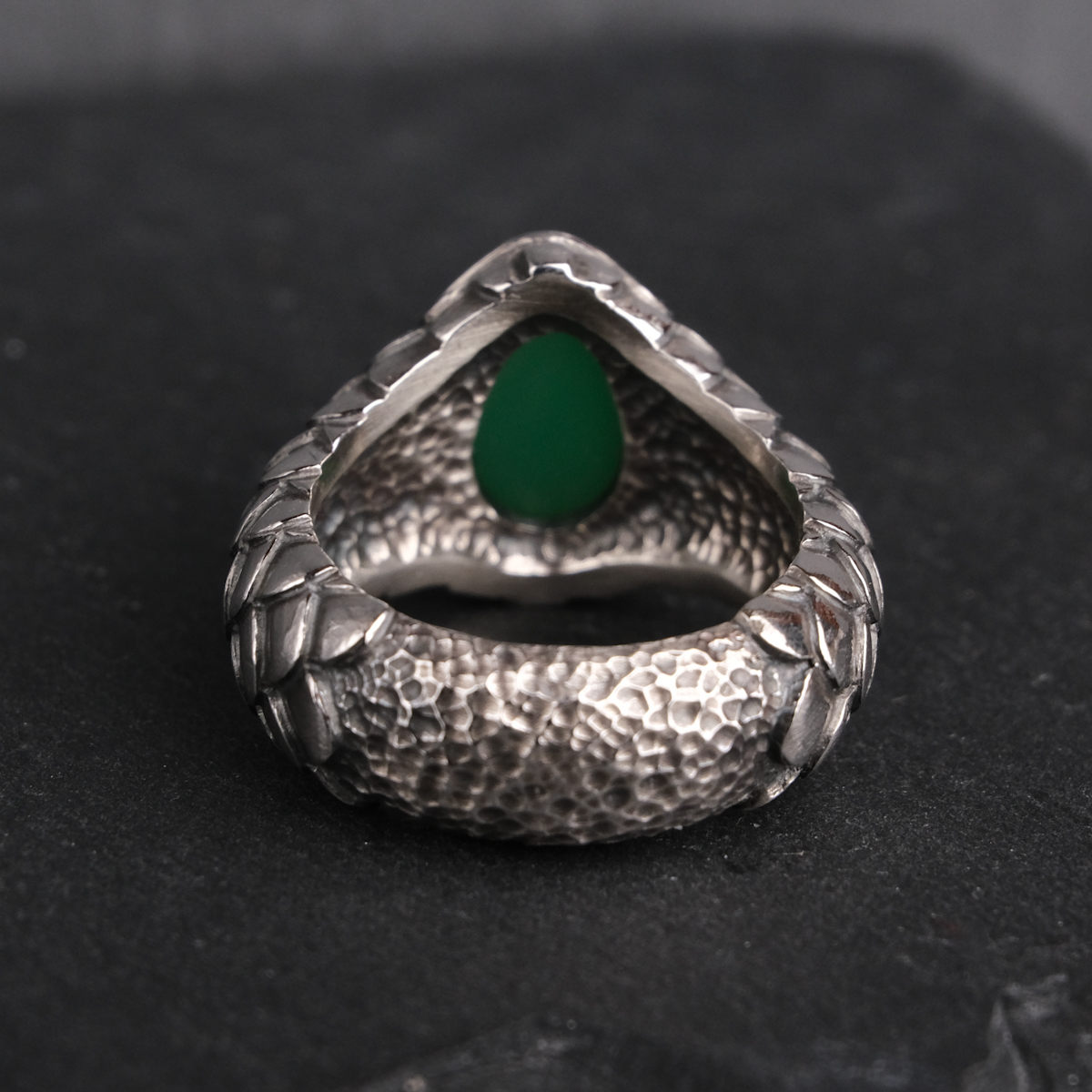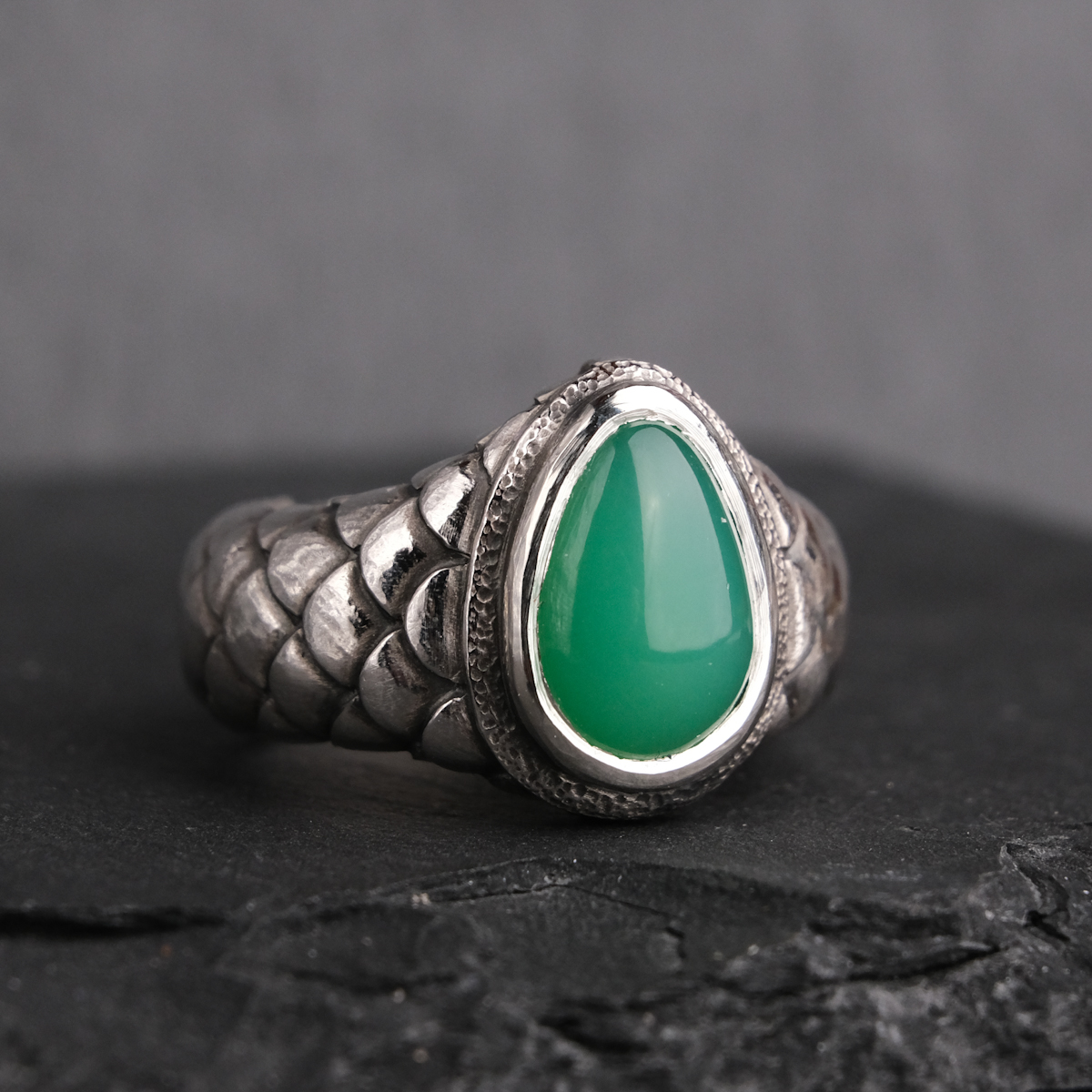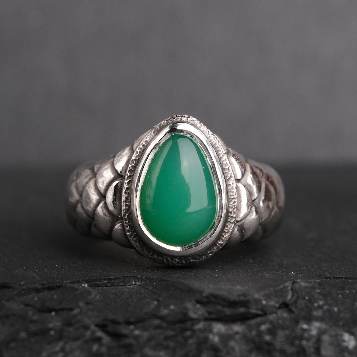 Ring with chrysoprase and scales – US 6 3/4 (17.1)